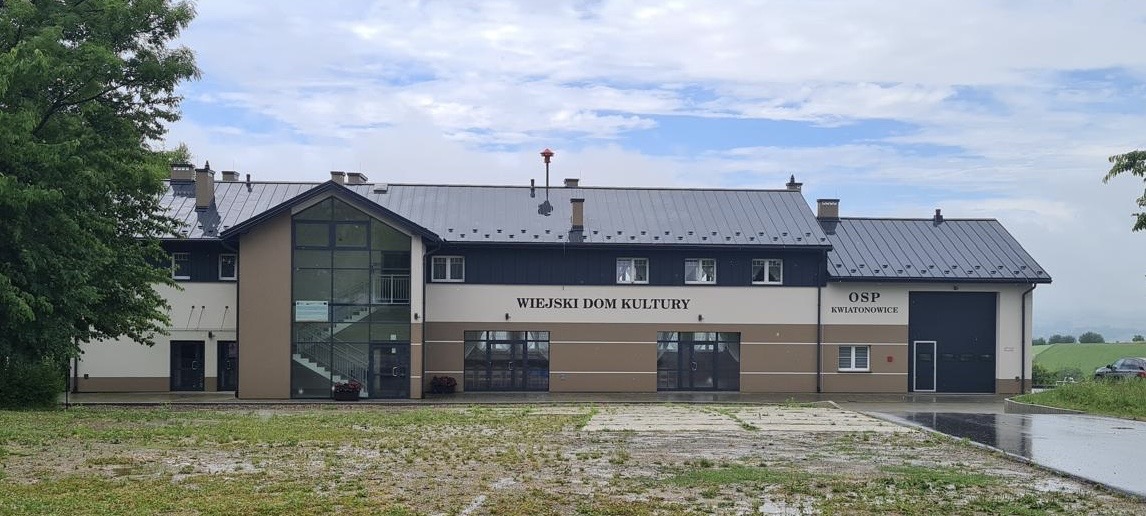 - Rozbudowa i przebudowa części budynku wiejskiego w Kwiatonowicach z zakresie klatki schodowej, garażu OSP i zagospodarowania działki (przebudowa parkingu i budowa nowych miejsc postojowych, budowa drogi p.poż, zbiornika na deszczówkę) wraz z ujęciem wody do celów p.poż oraz częściową zmianą użytkowania